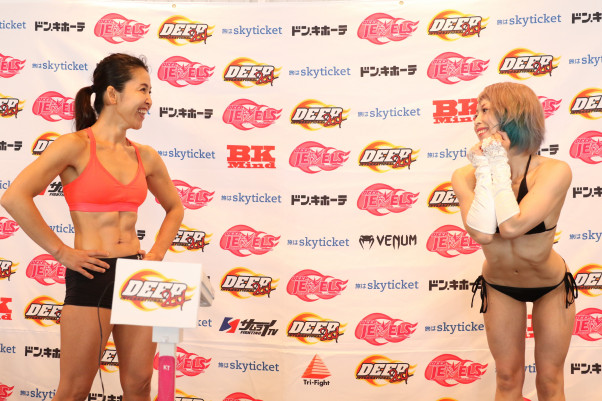 マドレーヌ(右)のパフォーマンスに吹き出しながらも「細くて手足が長い。パンチが得意なのかな」としっかり分析するしなし(左)