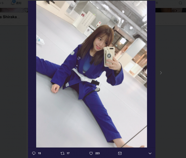 柔術衣姿の白川未奈 @MinaShirakawaより