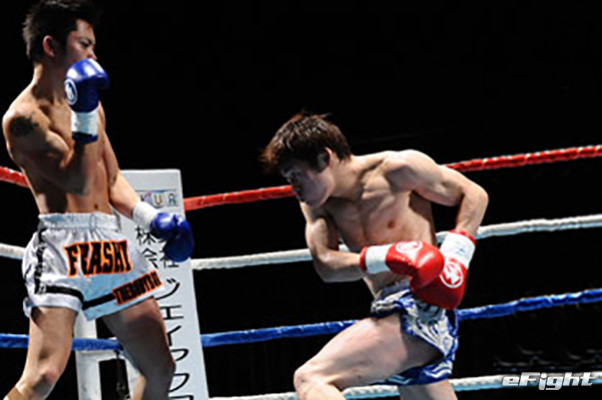 町田(右)の武器は刀を抜く姿勢から繰り出される居合パンチだ