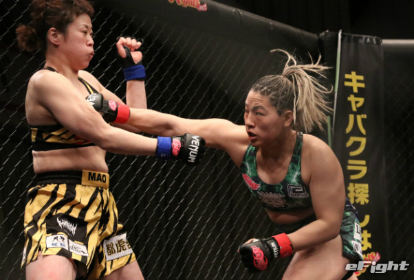 今年3月には秒殺KO勝利を決めたKINGレイナ(右)