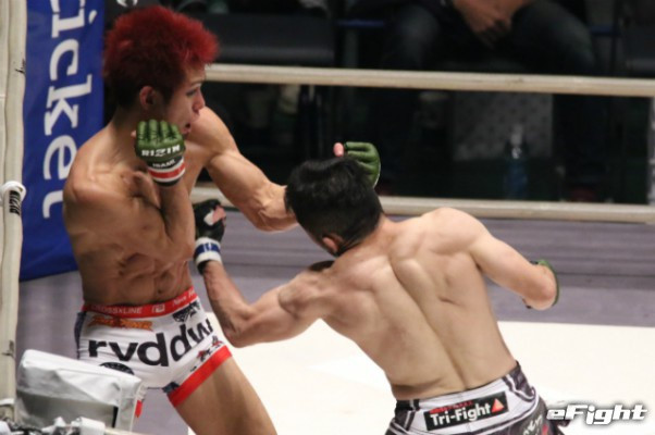 砂辺(左)が昨年10月に越智に(右)にKO負け。砂辺はリベンジを目指す