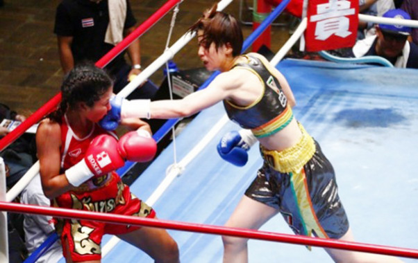 2016年、プロボクシングの後楽園大会で東洋太平洋1位の後藤あゆみに4Rコーナーに詰められるペッターピーだが粘りを見せた