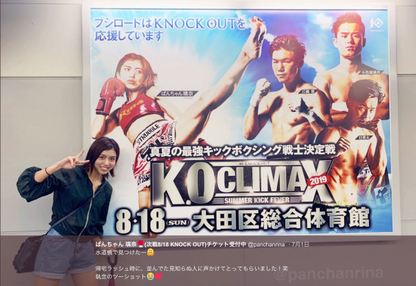 巨大広告と2ショットのぱんちゃん(@panchanrinaより)