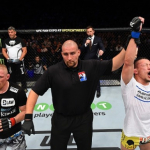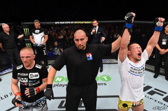 2015年6月、網膜剥離を乗り越えUFC2勝目を上げた川尻が歓喜のガッツポーズ