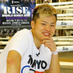 前回のスアキム戦で、右フックをヒットさせる那須川