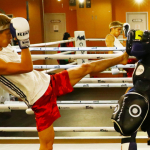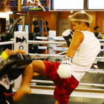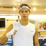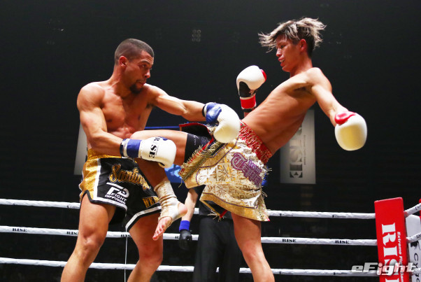 前回の試合でヒザ蹴りを突き刺す白鳥
