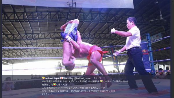 変形パワーボム!?対戦相手となるバーがKO勝利する瞬間(LETHWEI IN JAPAN twitterより)