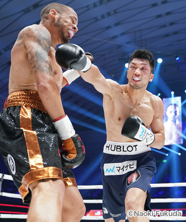 ほぼ棒立ちのブラントに追撃の右を叩き込む村田諒太