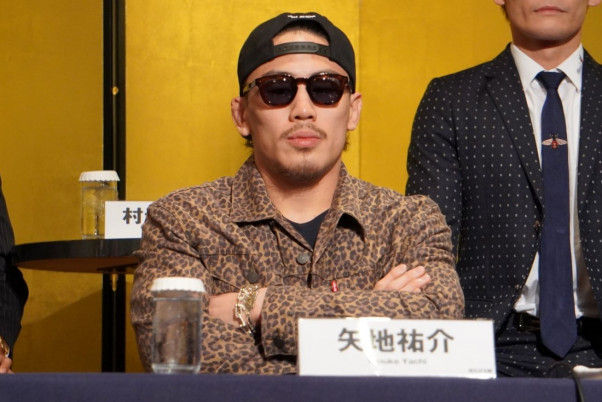 7月8日の会見ではサングラスをかけ不穏な空気を漂わせた矢地