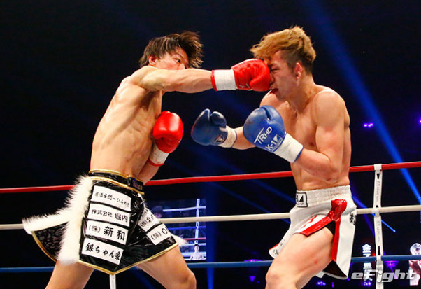金子はK-1初参戦で玖村修平(右)との激闘を制した(19年3月)