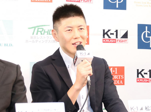 松本はネクタイを締めず、背広のボタンも開けたクールビズスタイルで丁寧に挨拶
