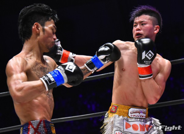 前回はスアキムの圧力とパワーにスピードで対抗、右フックをヒットさせる那須川