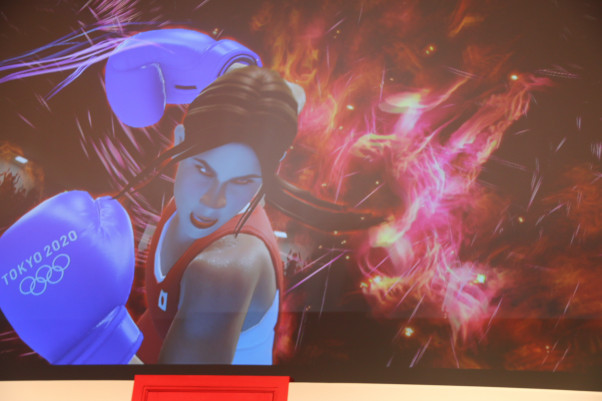 ボクシングで登場する最強キャラの吉田沙保里。必殺パンチを決める迫力ある瞬間