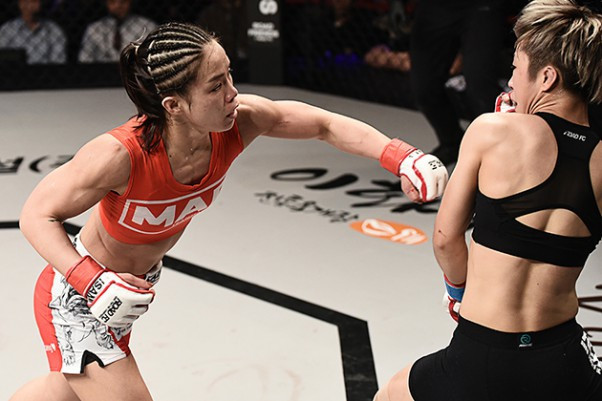 昨年12月にはRIZIN出場経験もあるジン・ユ・フレイにKO勝利したソヒ(左)(c)ROAD FC