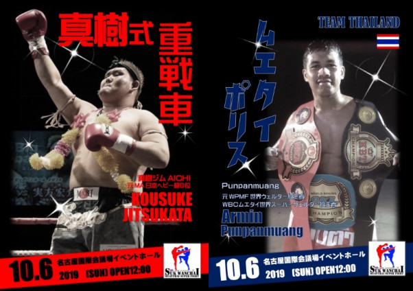 実方宏介(左)が初の名古屋大会出場でプンパンムアン(右)を迎撃