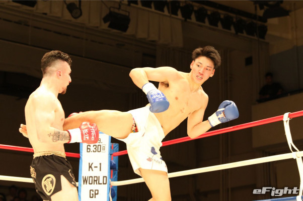 木村ミノル(左)からダウンを奪う健闘を見せた近藤魁成(右)