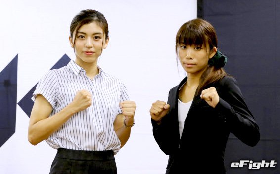 7月の会見で初めて対面した対戦相手のぱんちゃん(左)と