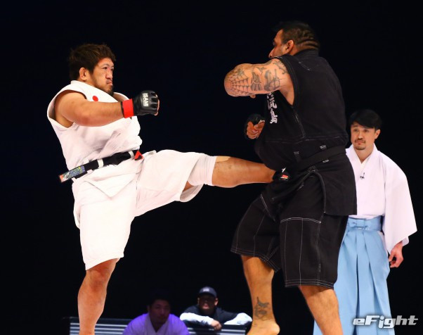 関根(左は)は巌流島3連勝と活躍。写真は18年1月に巨漢アンブリッツを1R で下したときのもの