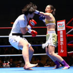 浅井(左)が空手こまちの代打としてエルナ(右)と対戦
