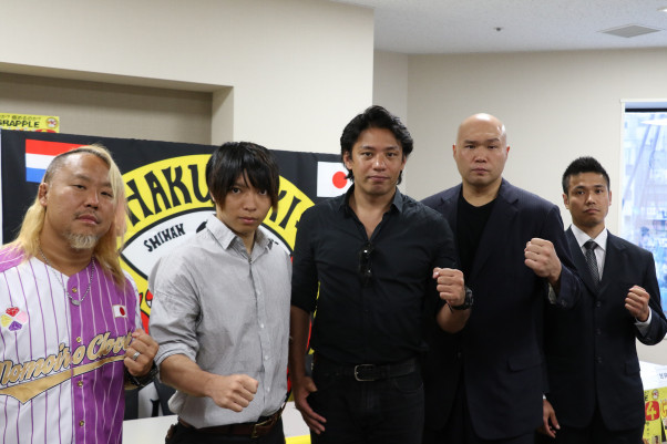 「chakuriki4」に出場する選手たち。左から佐野直、飯塚優、鈴木悟、ノブ・ハヤシ、平野将志