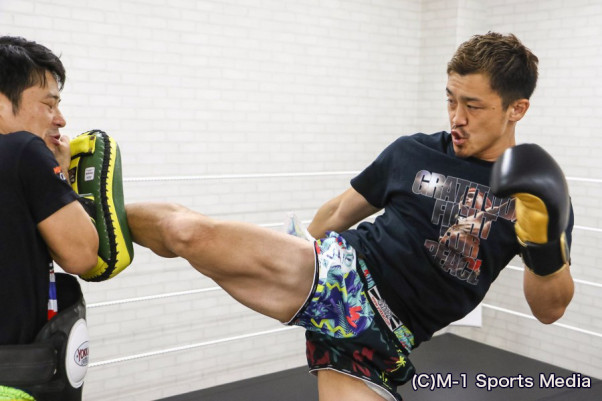 強烈なハイキックを放つ大和。持つ側の衝撃も大きい