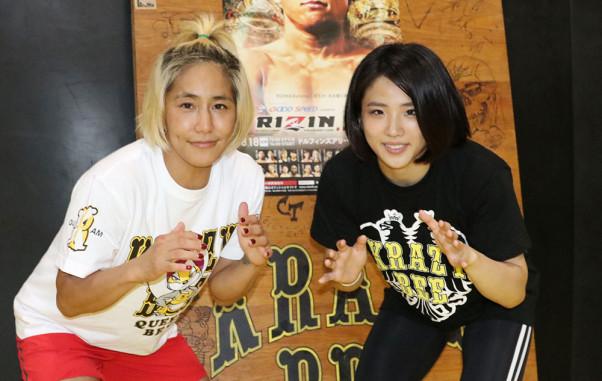 8.18『RIZIN.18』に向けて公開練習を行った、あい(右)。スパーリングパートナーは山本美憂(左)が務めた