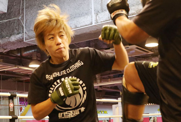 対戦相手・アムに見立てた相手とスパーリングを行う浜崎
