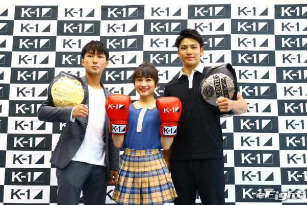 K-1甲子園PR大使を務める近藤。会見で“日本一かわいい女子高生”福田愛依、西京佑馬と