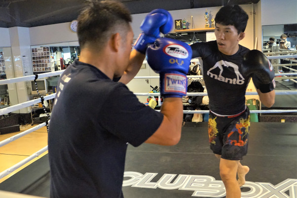 ミット打ち、マススパーを公開した水垣。公開練習後も調整を含めたトレーニングは続いた