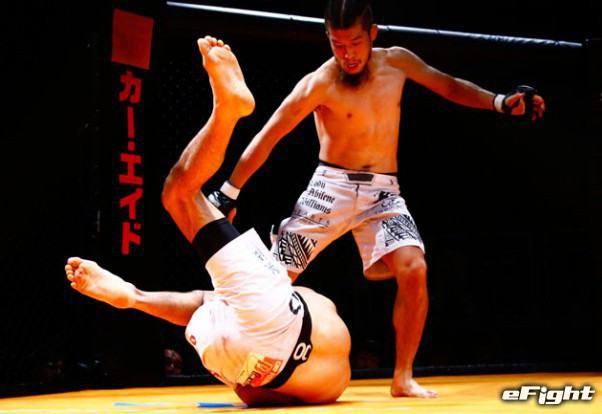 サッカーボールキックで対戦相手を壮絶KO、DEEP王者となった上迫(17年7月)