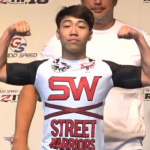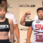 浜崎(左)とのフェイスオフで、見栄えを気にしてかアムは腕をサウスポーに入れ替える(c)RIZIN FF