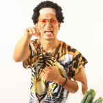 大阪大会に合わせ、大阪のオバチャンバージョンで気合を入れる城戸 (C)M-1 Sports Media