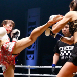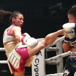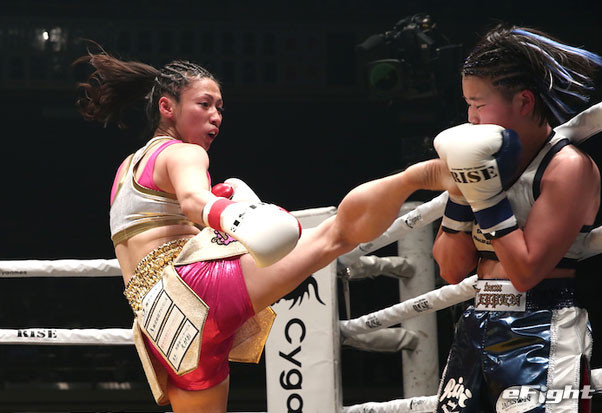 那須川梨々(右)に蹴りで攻める百花
