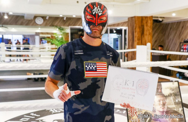 スケッチブックでランバージャックデスマッチをプレゼンしたマスクマン左右田
