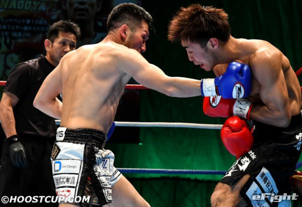 昨年5月の王座戦で打ち合う一刀(左)と上杉(右)