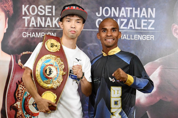 調印式と前日計量を終えた両者。田中恒成がゴンザレス(右)相手にV2をかけ戦う