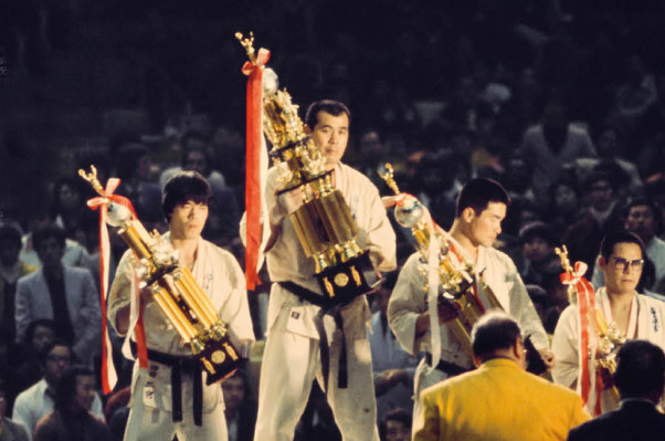1975年の第1回世界大会で優勝した佐藤勝昭(中央)提供:Fight&Life