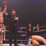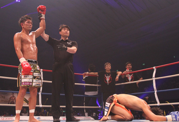 皇治の勝利が告げられた瞬間、大岩はリングに崩れ落ちた