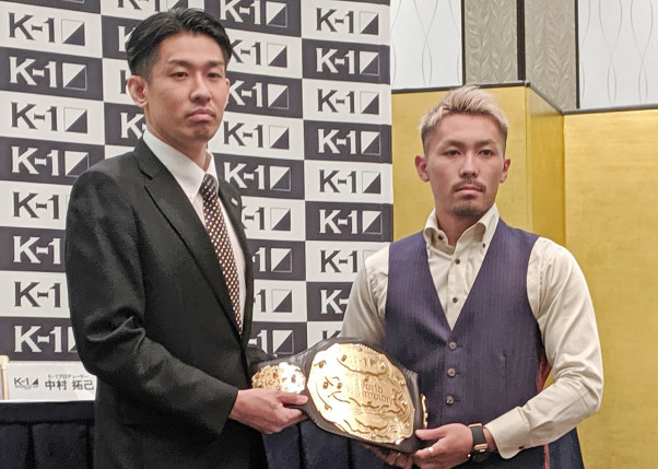 中村拓己K-1プロデューサー(左)も村越の今後に期待する