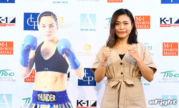 6月の会見でノットソンの等身大パネルと並ぶ壽美