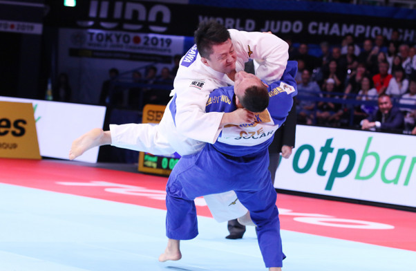 100kg超の原沢を持ち上げるクルパレクのパワーある裏投げ。ポイントにはならなかったが、頭から落ちた原沢は頭を抱えしばらく立ち上がれなかった。
