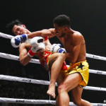 セミは元ラジャダムナン王者・梅野(左)と現RISE王者・白鳥(右)の一戦