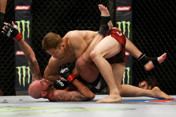 佐藤(上)の4月の決め手は上からのヒジ打ち(C) Jeff Bottari/Zuffa LLC/UFC