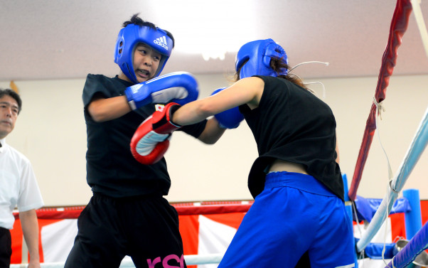 1Rから果敢に攻めた松田だったが、2Rには篠原(左)のペースに