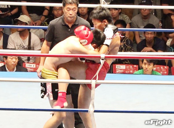 ヒザ蹴りをグサリと突き刺し、KO勝利するMasakI