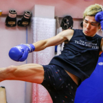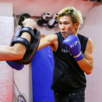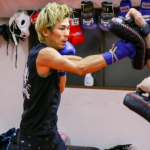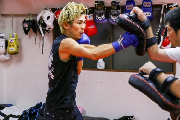 「石の拳」と呼ばれるパンチをミットに叩き込む