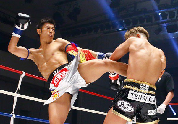 秀樹(左)の強烈な左ミドルにも「ミドルが痛かったことはない」と稲石は余裕の発言
