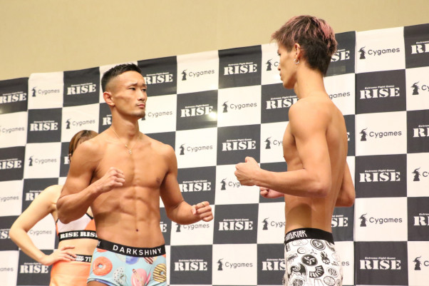 両者60.95kgで計量を一発でパス、絞り上げられた肉体でフェイスオフ