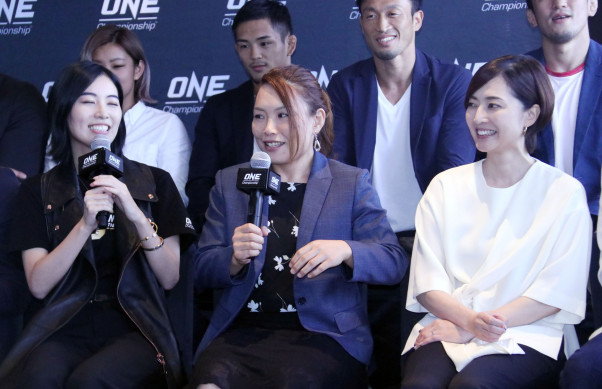 アトム級のベルトにも挑戦したいと言うVV Mei(中央)。右は元フィギュアスケーターの八木沼純子