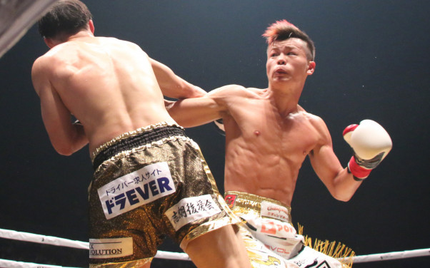 カウンター待ちの志朗に左フック、志朗の右ストレートとクロスする